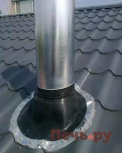Одним из самых сложных узлов считают проход дымохода через кровельную систему. Необходимо создать высокую герметичность, а также устранить возможность возгорания. Чтобы цель была достигнута, в свое время предпринимали множество действий, а за дело брались только профессиональные кровельщики. Если находили проблемные участки, то их заполняли асбестом, крепили рубероид и жесть, а также пользовались раствором цемента.