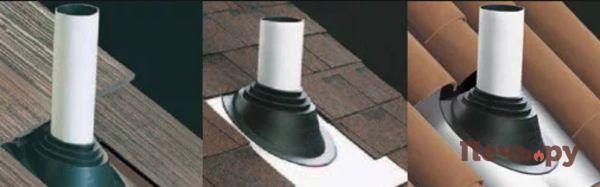- Созданы из резины, чаще из силикона, в виде сужающегося конуса с гибкой манжетой. С помощью нее обеспечивается плотное присоединение трубы к крыше. Кроме того, она защищает от влаги и пыли. Верхушка конуса повторяет форму трубы. Снизу соединяется с уплотнителем.